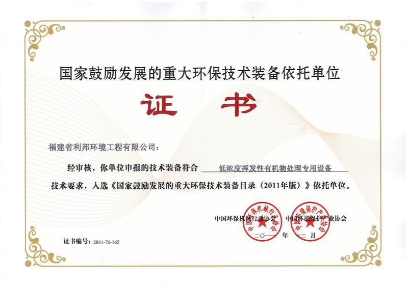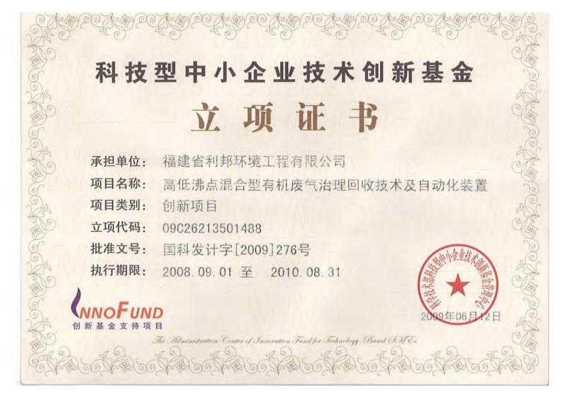 福建省科技型企業、福建省創新性企業、福建省首批科技小巨人、福建省“專精特新”專業化企業,擁有企業研發中心、福建省有機廢氣凈化設備工程技術研發中心;公司產品獲得科技部、環保部、商務部、國家質量監督總局頒發的“國家重點新產品”證書,“中低濃度揮發性有機物回收凈化裝備”被列入《國家鼓勵發展的重大環保技術裝備目錄(2017年版)》;公司核心發明專利分別獲得了中國專利獎優秀獎、福建省專利獎二等獎等專利獎項,其中兩個核心技術分別獲得福建省技術發明獎二等獎、福建省科學技術進步獎二等獎;公司